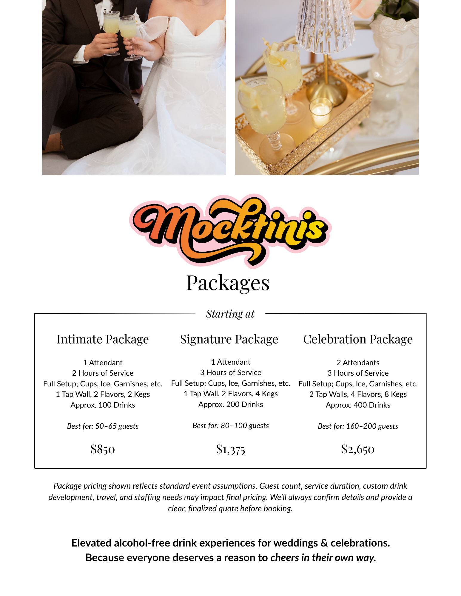 Because we pre-batch and arrive fully prepared for your event, pricing is always based on the number of guests weβre serving. Weβll walk through all of this together on your call so everything is clear and comfortable before moving forward.